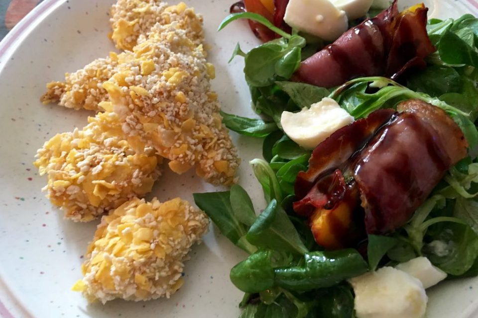 Chicken Nuggets kann man selber machen! Und deutlich fettärmer als die weithin bekannte Variante des Restaurants zu den goldenen Bögen! Mit einer echt leckeren Cornflakes-Panade. Da braucht man nicht mal Pommes dazu…