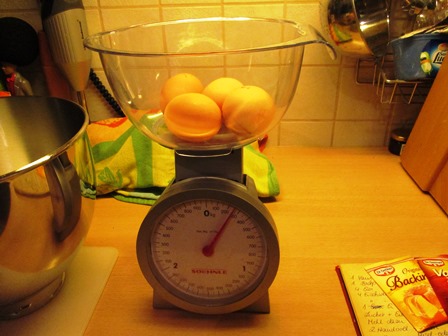 - So und jetzt kommts! Ihr fragt euch garantiert schon die ganze Zeit, was die mit dem "Eischwer" meint. Na? Ideen? Ok, ich verrate es euch. Nehmt vier von den fünf Eiern und wiegt sie. Und exakt die Menge braucht ihr an Zucker und Mehl. Damit ist die Menge immer perfekt an die variable Größe der Eier angepasst. Die waren früher schon echt fit, ne?