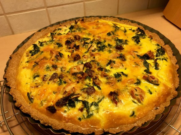 Diese Tarte isst auch mein Mann – weil nämlich Fleisch drin ist! Dazu noch Spinat, Kokosmilch, Erdnüsse, Curry und ein Haufen anderer leckerer Zutaten. Basierend auf einem Rezept von Annik Wecker gibt das eine leckere Tarte, so richtig für den Frühlingsanfang. Auch, wenn es draußen aktuell noch nicht wirklich danach aussieht!
