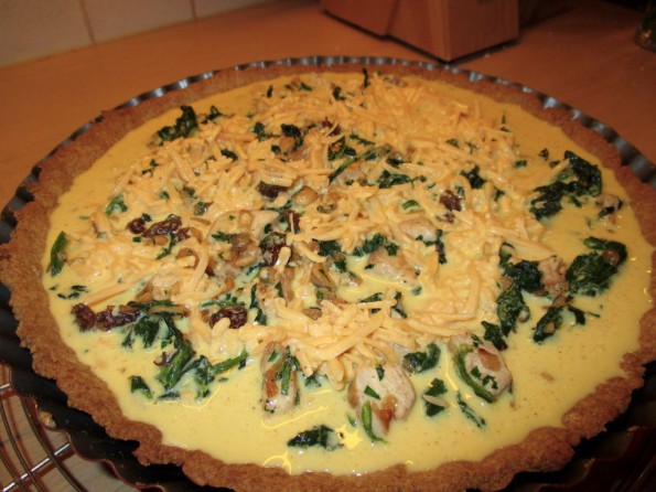 Frühlingstarte mit Hühnchen, Spinat, Curry, Erdnüssen, Rosinen, Curry, und und und... mhmmmm, lecker!