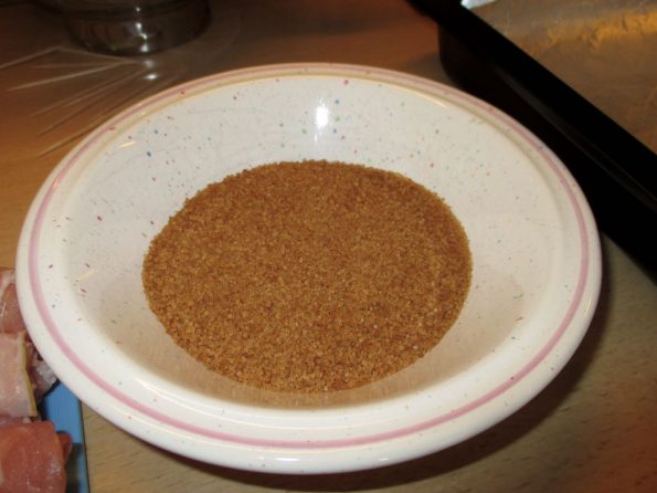 - Gebt etwa eine halbe Tasse braunen Zucker in eine kleine Schüssel.