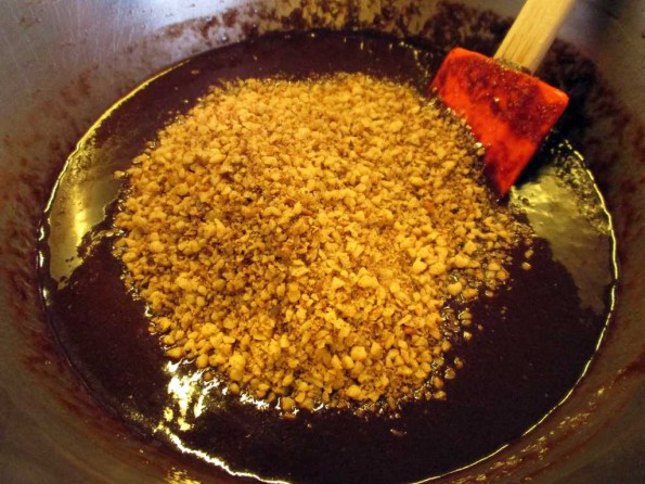 - Wenn die Nüsse fertig angeröstet sind, stellt sie einfach mit der Pfanne beiseite.