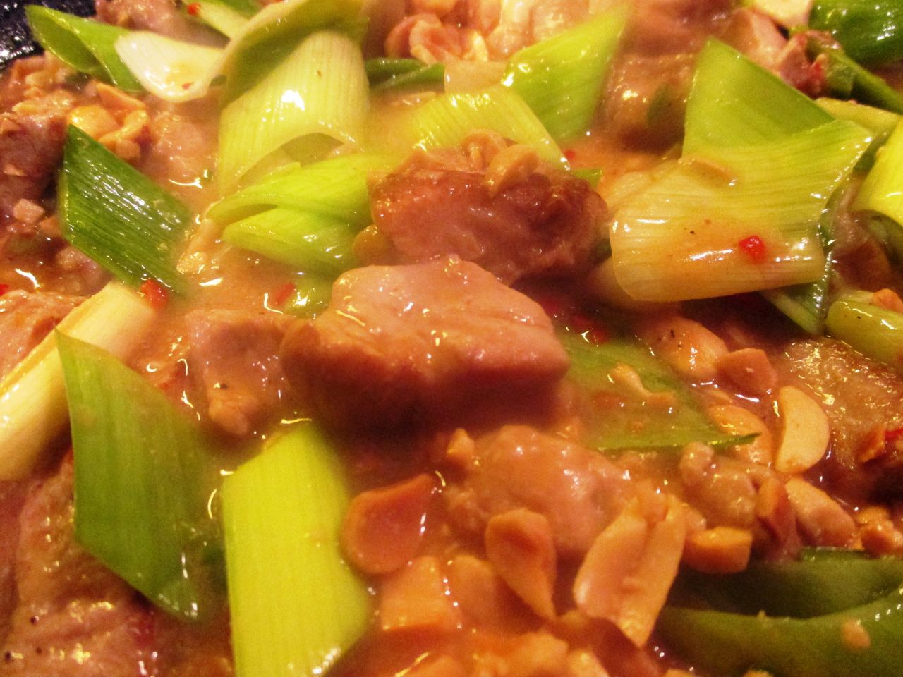 Schweinefilet mit Erdnüssen und Lauch aus dem Wok